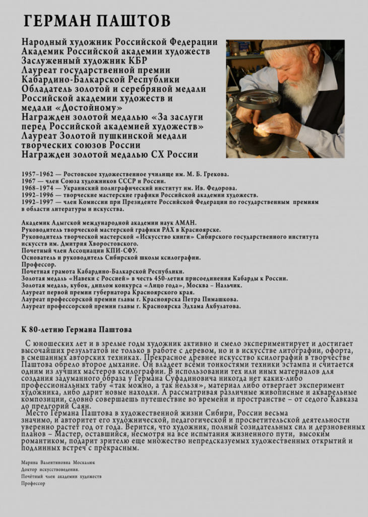 Юбилейные мероприятия в честь 80-летия художника Германа Паштова пройдут на его Родине в КБР, сообщает портал правительства республики.