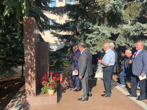 После собрания гости совершили возложение цветов к памятнику сотрудникам Госавтоинспекции, погибшим при выполнении служебных обязанностей в разные годы и прошли по зданию, посетили спортивный зал и увидели процесс боевой подготовки личного состава, который продемонстрировала сотрудник подразделения, капитан полиции, спортивный судья всероссийской категории по дзюдо Светлана Березгова.