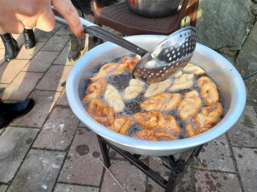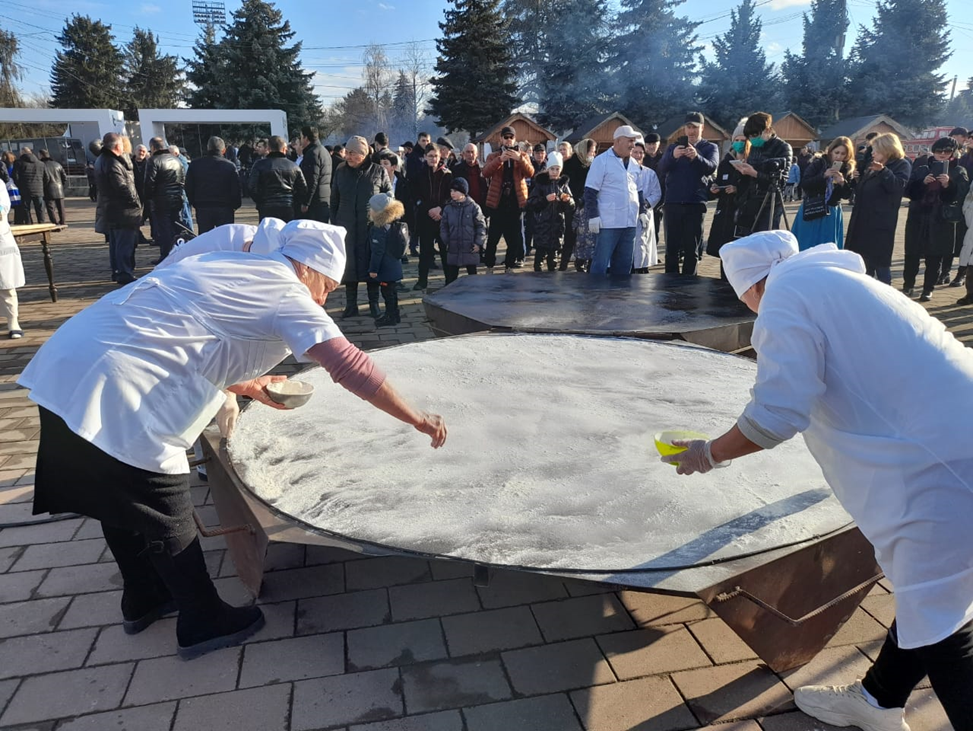 Несомненным пиком программы было приготовление прямо на площади огромного, размером более трех метров и весом около 50 килограммов, хычина-гиганта. Его раскатывали не простыми скалками, а специально приспособленными агрегатами, представлявшими собой нечто среднее между скалкой и малярным валиком. Момент его выпечки привлек внимание всех собравшихся: сперва пропекли одну сторону, а затем с помощью специального приспособления и при поддержке 10 мужчин всю конструкцию перевернули прямо в воздухе и дожарили нижнюю часть хычина. Его вкус с удовольствием обсуждали гости праздника в личных аккаунтах на страничках социальных сетей.