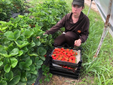 На сельхозпредприятии "Клубничная поляна", расположенном в селе Баксаненок, полным ходом идет сбор урожая.