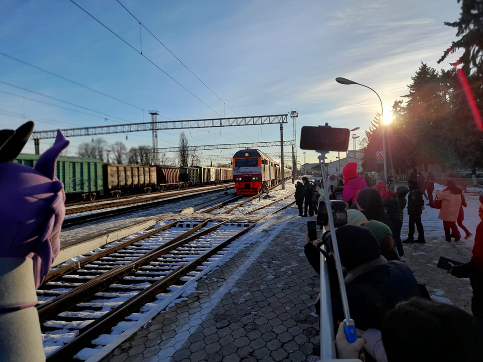 Сказочный состав, украшенный огнями гирлянд и лампочек, возглавлял паровоз. Самый настоящий, образца 1956 года П-36 – он стал последним построенным на Коломенском заводе и последним выпущенным в СССР паровозом, его восстановили в прошлом году, а до этого паровоз был экспонатом на площадке Музея железных дорог России.