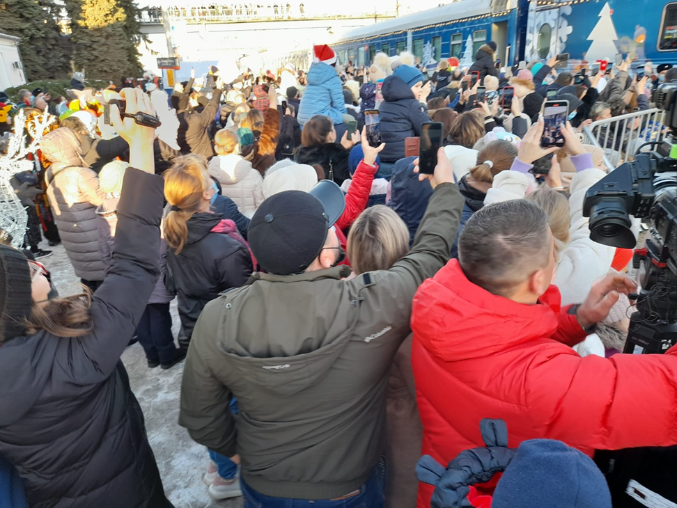 Сотни жителей города Нальчика приняли участие в праздничной встрече поезда, и было видно, что встречу с Дедом Морозом также мечтали увидеть и сами взрослые, которые привели детей. Отметим, что праздничный состав выехал 5 декабря из Великого Устюга, чтобы посетить российские города в преддверии Нового года.