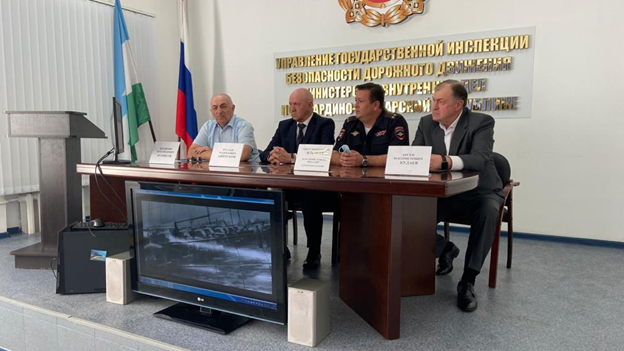 В президиуме собрания наряду с начальником УГИБДД подполковником полиции Робертом Яльмеевым, полковник милиции в отставке Владимир Арамисов, руководитель ГИБДД МВД Кабардино-Балкарии с 1992 по 1995 год полковник милиции в отставке Руслан Мажидович Анимуков и полковник милиции в отставке Арсен Магометович Кудаев, возглавлявший ГИБДД республики с 1995 по 2011 год.