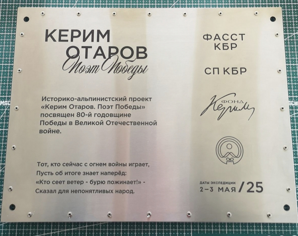 Целью восхождения стало увековечивание памяти народного поэта Кабардино-Балкарии, ветерана Великой Отечественной войны Керима Отарова и установка памятной плиты с его стихами.
