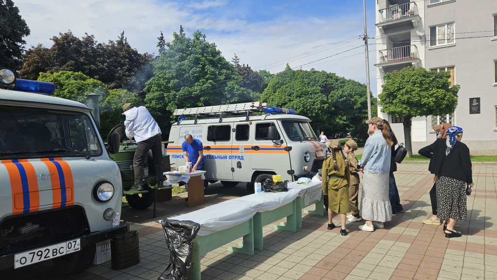 Особую атмосферу создавали фронтовые артистические бригады, развернувшие импровизированные концерты прямо на броне боевых машин. Звучали песни военных лет. Самые юные гости праздника с радостью примеряли на себя роль танкистов и артиллеристов, занимая места в кабинах боевых машин. Аромат дыма и полевой кухни, предлагавшей отведать настоящую солдатскую кашу, возвращал в те суровые годы, когда каждая ложка была на вес золота.