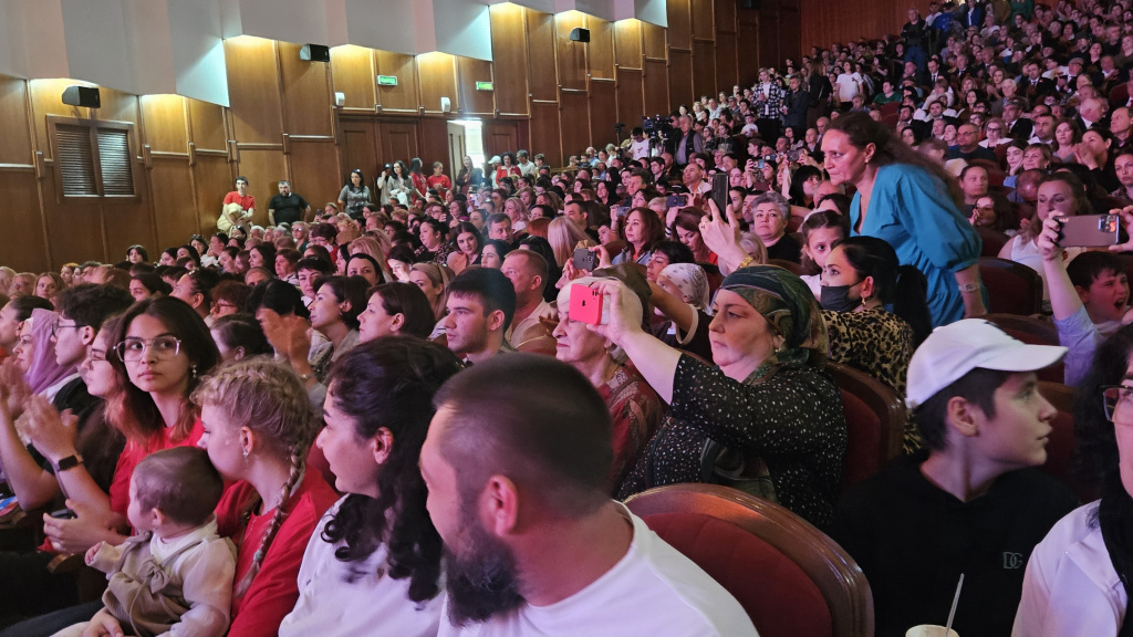 В это же время в стенах Музыкального театра развернулась грандиозная концертно-патриотическая программа, ставшая кульминацией торжеств. Зал был полон: члены Правительства КБР, представители парламента, участники и ветераны специальной военной операции вместе со своими семьями, юнармейцы, кадеты, представители общественных организаций, жители и гости города – все, для кого Великая Победа – это не просто страница истории.