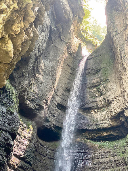 В рамках экскурсии С. Алипова посетила Чегемское ущелье и Чегемские водопады, обратила внимание на местные сувениры и национальную продукцию, которой торгуют здесь же.