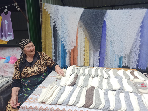 В завершение, журналистка рассказывает о местных мастерах и мастерицах, предлагающих свою продукцию: национальные сладости, вязанные изделия из овечьей шерсти и многое другое.