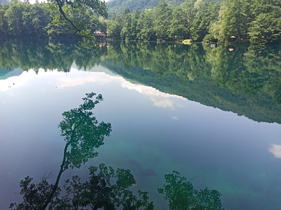 «Секретное озеро находится на высоте примерно 900 метров над уровнем моря, глубиной более 20 метров и окружено густым лесом. Оно, как и все пять озер, тоже карстовое (т.е. образовывается в пустотах земной коры). Спуститься к нему невозможно, очень глубоко. Но на то оно и секретное»- рассказали журналистке туристы.