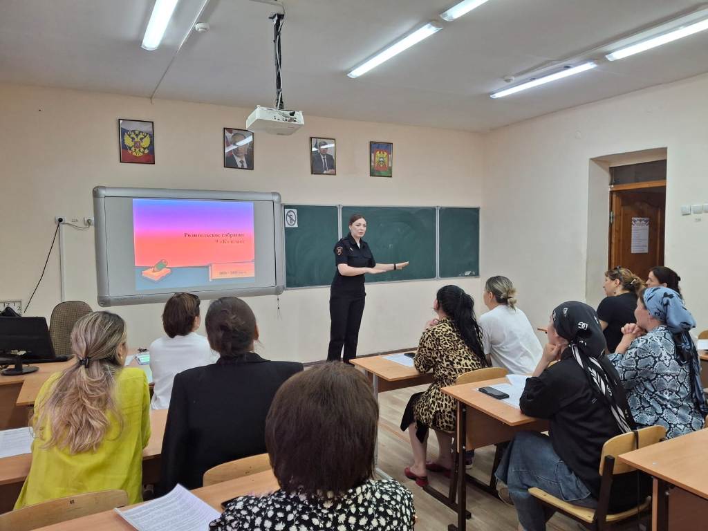 В средней школе №6 г. Нальчика старший инспектор группы пропаганды БДД УМВД России «Нальчик» капитан полиции Анна Борисова рассказала родителям, как наладить контакт и доверительные отношения с несовершеннолетними, объяснила, как приучить ребенка к соблюдению ПДД и выработать у них навыки ориентирования в дорожной среде.